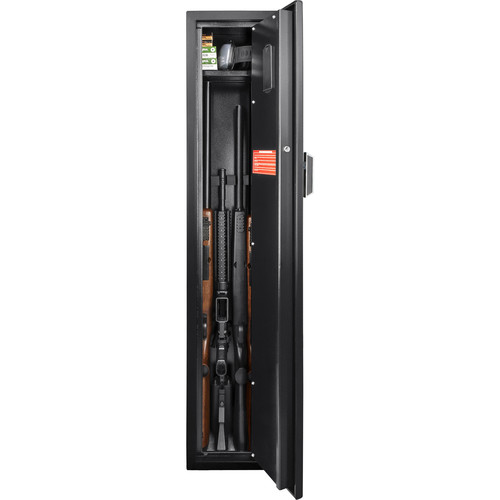 Con el toque de un dedo, usted y aquellos en quienes confía pueden abrir el teclado de acceso rápido estándar HQ800 Biometric Rifle Safe de Barska , pero las personas no autorizadas serán bloqueadas. La caja fuerte está diseñada para el almacenamiento seguro de cuatro rifles y municiones. Los tres cerrojos de bloqueo de acero sólido y la tecnología de reconocimiento de huellas dactilares hacen que este biométrico sea un complemento sensato para cualquier ubicación que requiera seguridad de acceso inmediato en un tamaño montable.