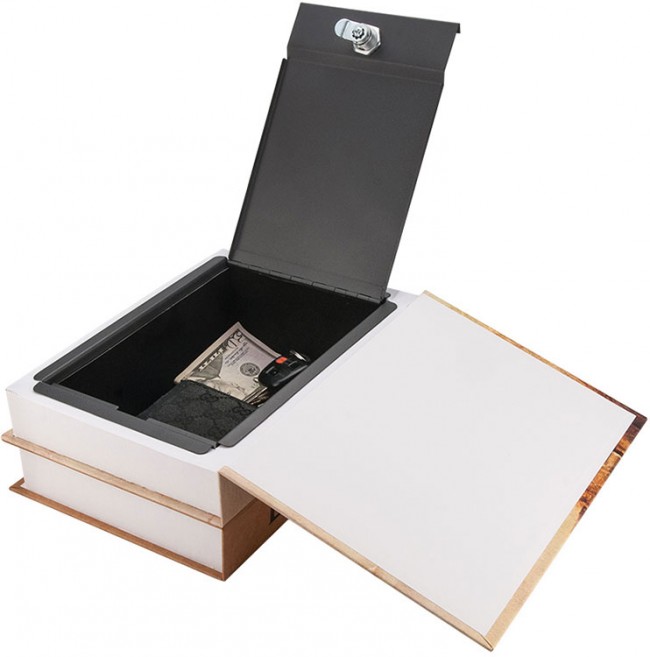 Haga que sus objetos de valor se vean como un par de sus volúmenes favoritos en su biblioteca con la Caja de bloqueo de doble libro de París y Londres con el bloqueo de teclas de Barska . A diferencia de la mayoría de las cajas fuertes para libros, este modelo se ve como dos libros para ayudar a agregar a la ilusión y el exterior de papel ofrece apariencias de libros reales. Al abrir la cubierta se revela la construcción interior de acero y la cerradura con llave. Un interior resistente a los arañazos protege sus objetos de valor contra daños.
