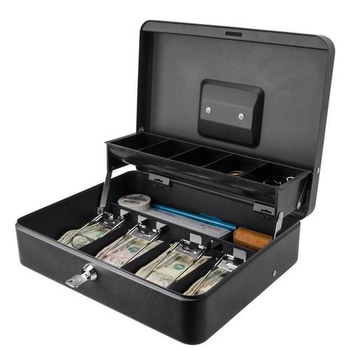 La caja de efectivo de estilo de registro estándar de Barska es ideal para realizar transacciones en efectivo mientras viaja. Una construcción de acero resistente y bandejas internas de organización ayudan a mantener el efectivo asegurado y organizado. La bandeja de monedas de 5 secciones se levanta automáticamente cuando la caja de efectivo está abierta, lo que permite un fácil acceso a las monedas. Esta caja de efectivo de tamaño estándar cuenta con un asa de transporte plegable y empotrada para una mejor portabilidad y almacenamiento.