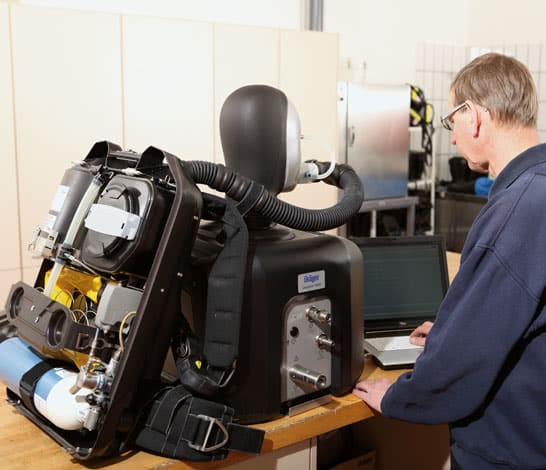 El Dräger Quaestor 5000 permite comprobar el funcionamiento y la estanqueidad de máscaras de protección facial completa, trajes de protección química, equipos respiratorios con línea de aire y equipos respiratorios de aire comprimido. El pulmón artificial integrado, a su vez, permite realizar pruebas dinámicas de respiración simulada. Las mediciones de alta precisión e independientes del fabricante se realizan según la norma EN 137 y la directiva vfdb 0840-02.