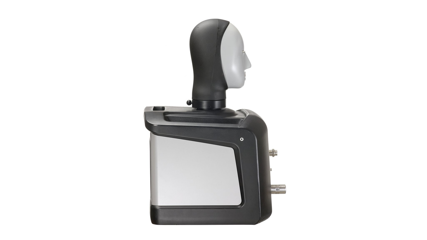 La cabeza de prueba se puede girar sin restricciones, pudiéndose asimismo retirar cuando sea necesario. Esta flexibilidad permite al usuario adaptar el diseño de las pruebas de forma aún más individual y cómoda a sus necesidades. El rostro de gel de la cabeza de prueba, que reproduce la elasticidad de la piel del rostro humano, permite el ajuste óptimo a todos los tamaños habituales de máscara.