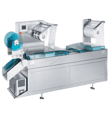 Esta máquina se puede combinar con una máquina automática de corte y una cinta de inserción para formar así una línea. El modelo QUICKVAC 2000-422 está también disponible en versión longitudinal (zona de inserción más grande). En caso de usar lámina rígida se puede usar opcionalmente una punzonadora