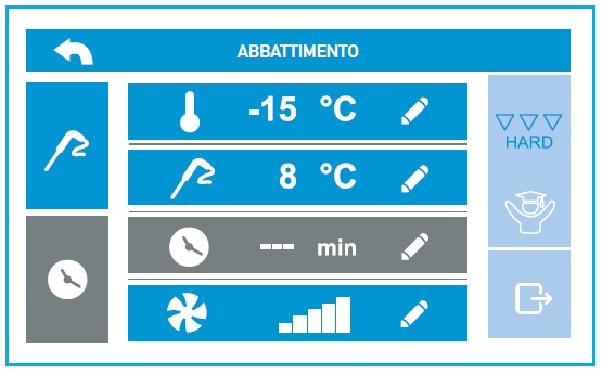 - Abatimiento: de +90ºC a +3ºC en menos de 90 min