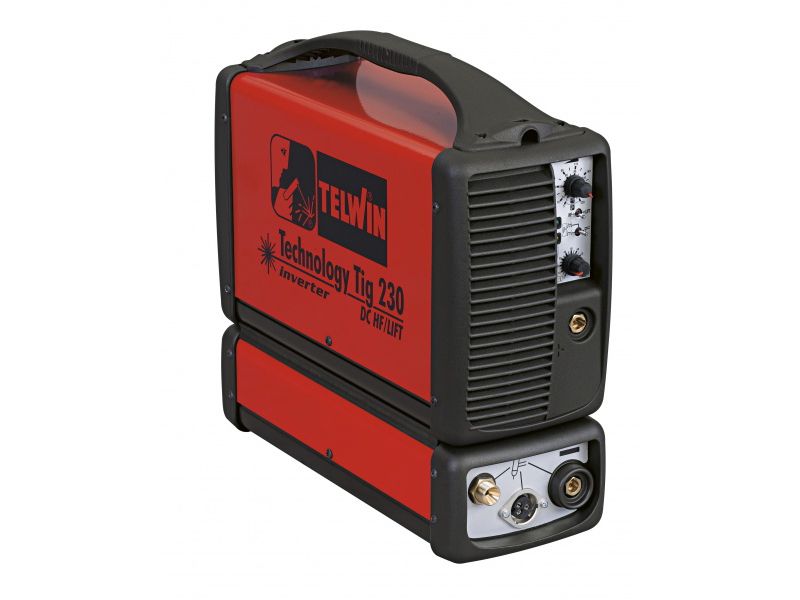 Soldadora Inverter Technology TIG 230 de Telwin, indicada para uso con materiales como acero, acero inoxidable, titanio, cobre, níquel y sus aleaciones.