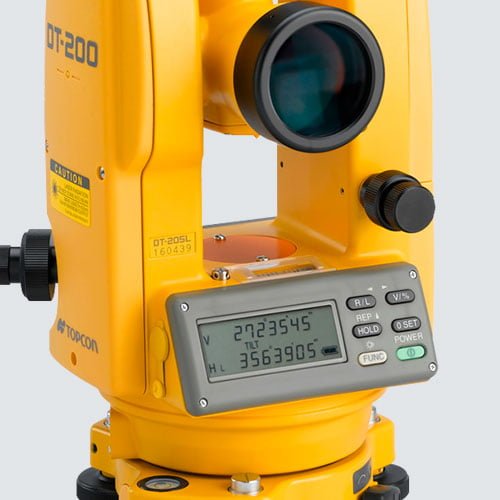 Con el Teodolito DT-200 asegure la confianza y la precisión de los resultados de sus levantamientos en medidas de ángulo con una simple operación. Además el DT 200 le permitirá a usted observar los ángulos verticales y horizontales en su amplio display de cristal líquido con lectura mínima al 10¨ seg.