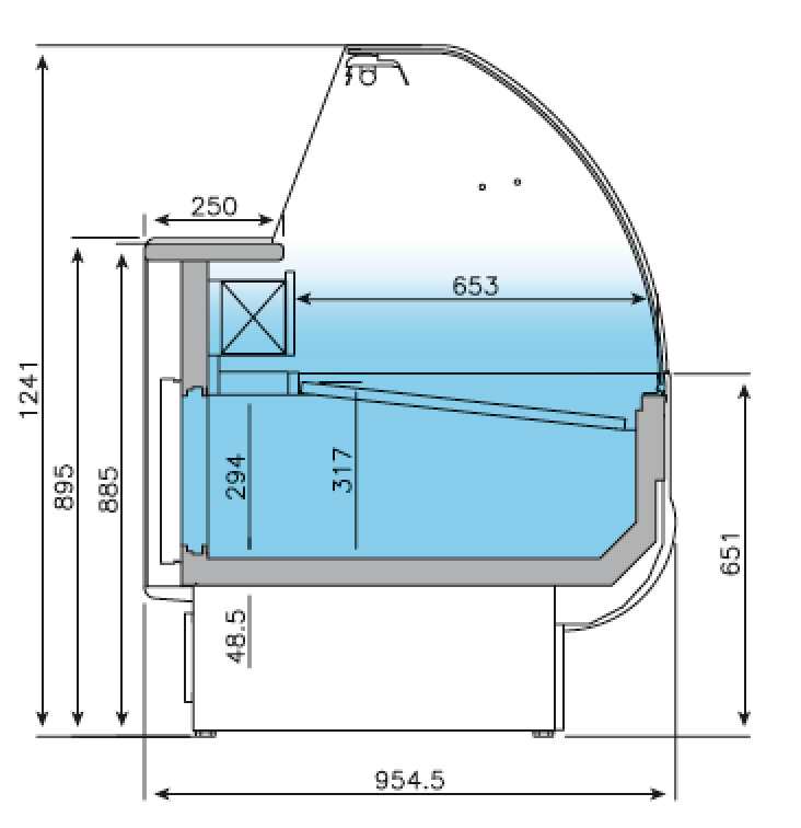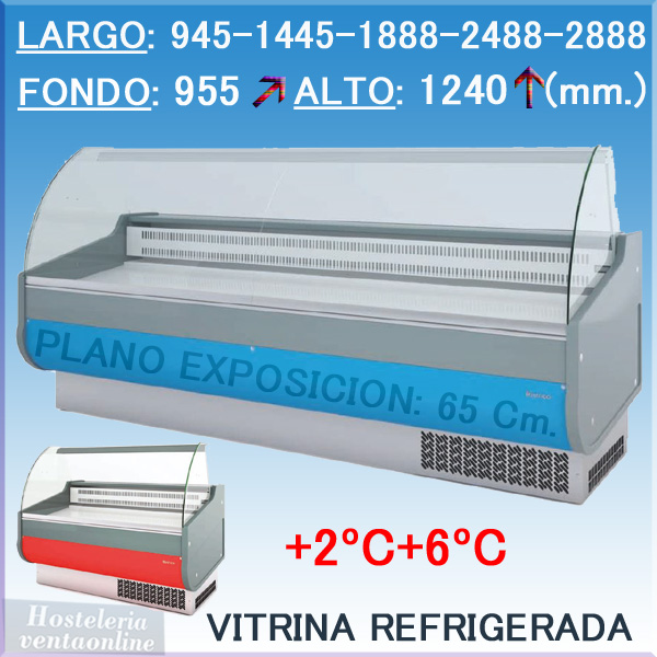 Vitrina profesional de la serie GRANADA VGRD de Infrico con exterior en chapa de acero plastificado en varios colores. Bancada de acero esmaltado. Cristal curvo securizado. Modelo de refrigeración semiestática por gravedad. Iluminación interior en perfil superior. Ventiladores en reserva.